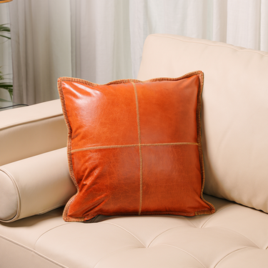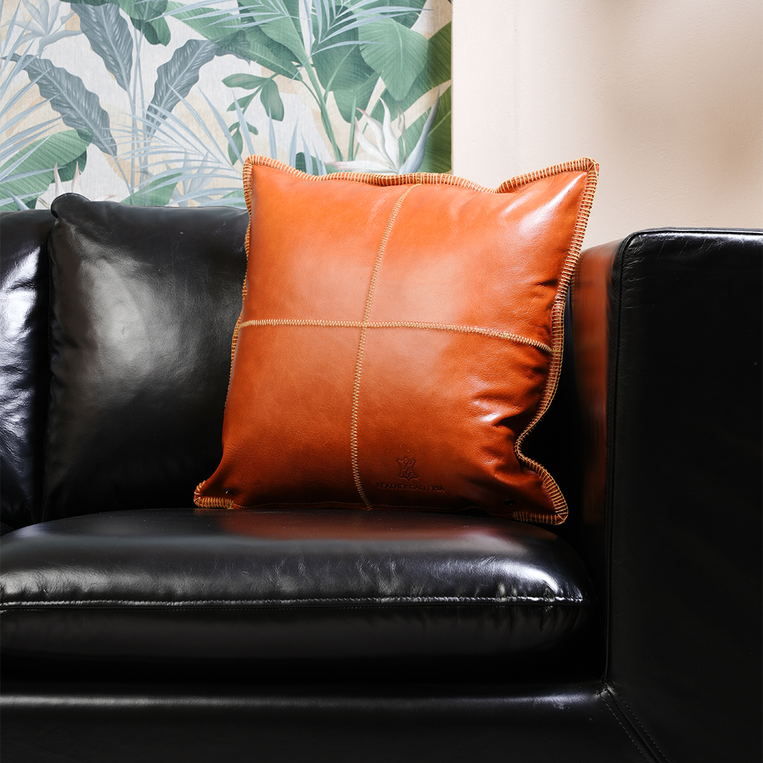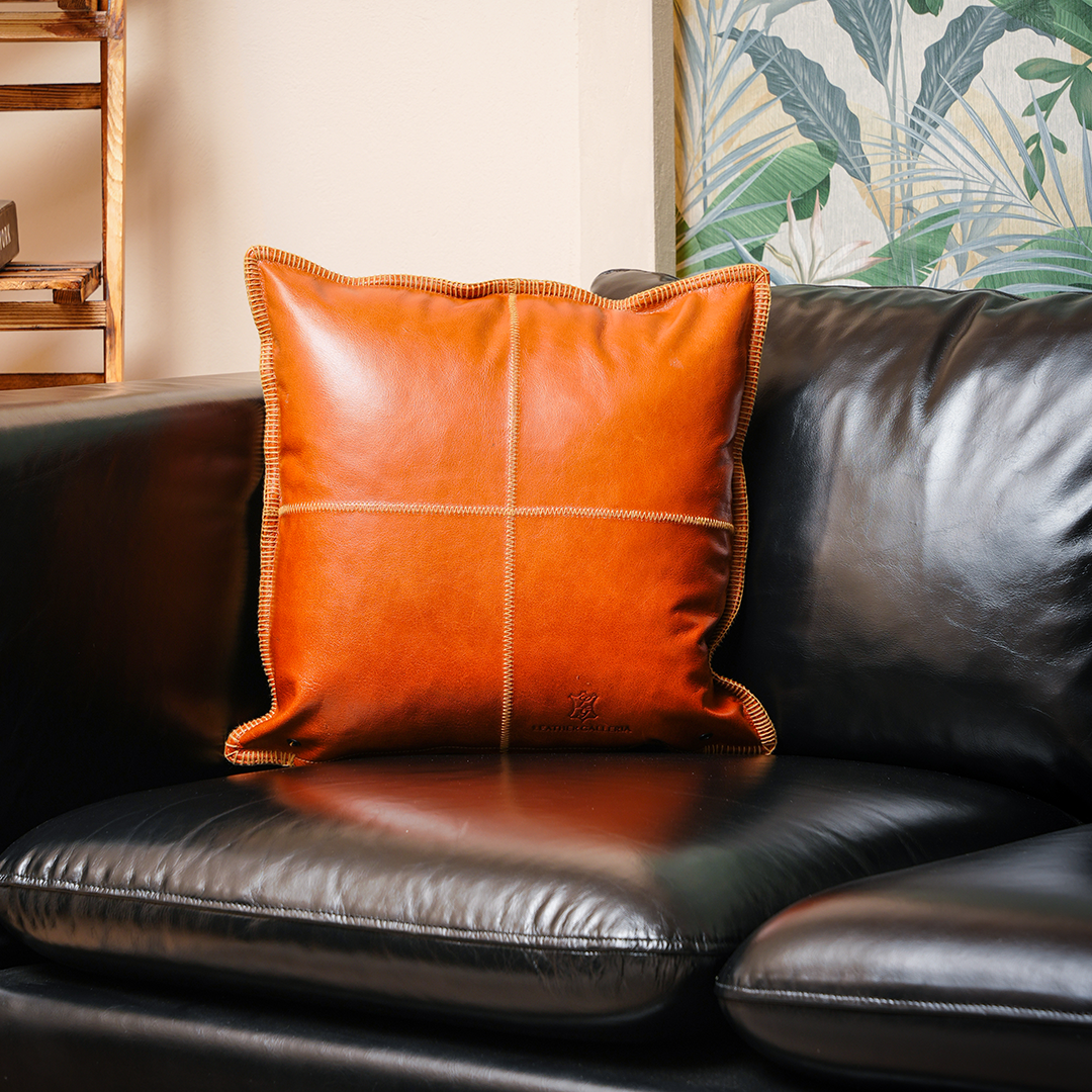 Refined and contemporary, the Cognac Grid Cushion is designed to add structure and warmth to your living space. Crafted from 100% genuine cow leather in a rich cognac tone, this cushion features grid-patterned stitching that blends modern minimalism with classic luxury.