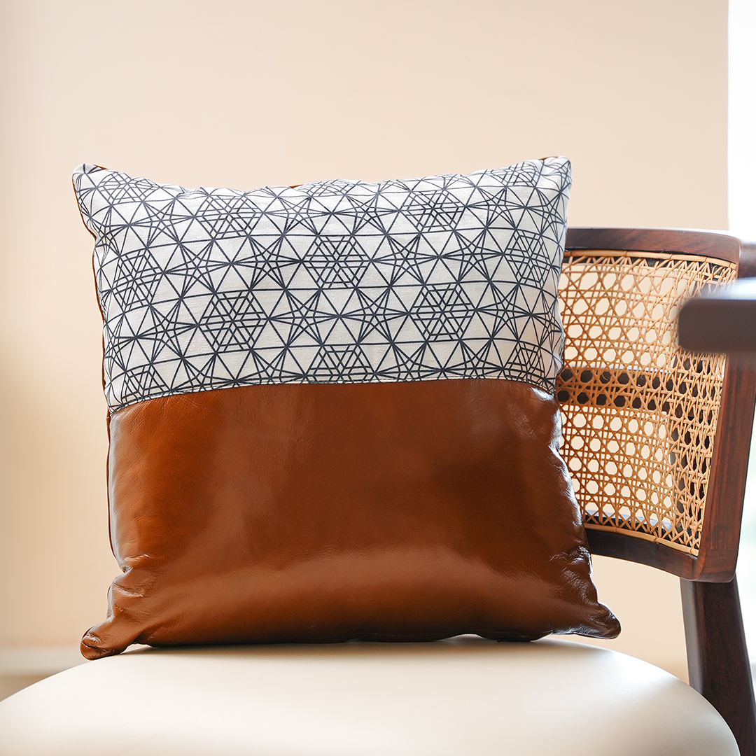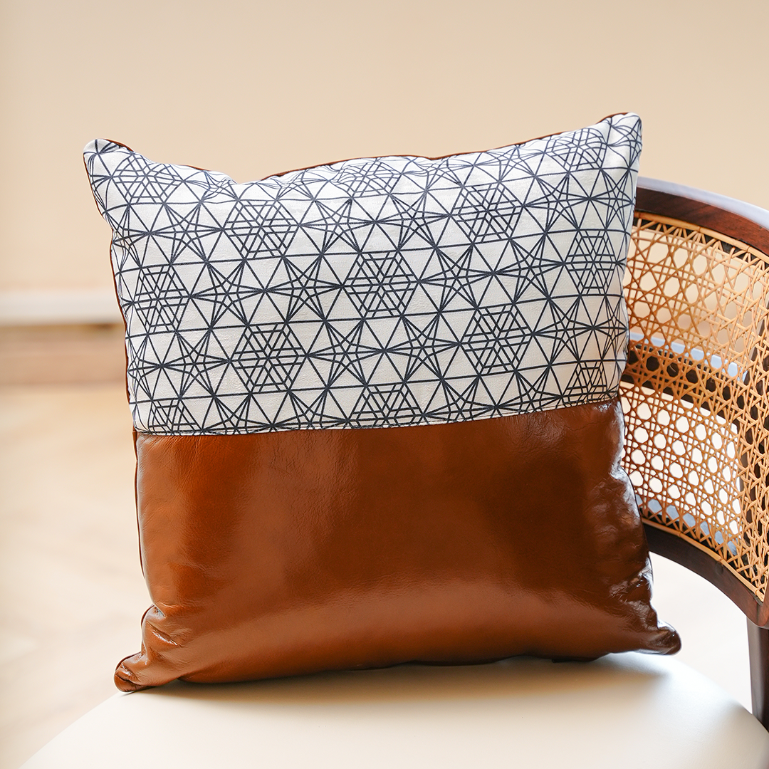Bring a modern edge to your home with the Fusion Cushion, a unique design that blends premium cow leather with contrasting fabric panels for a bold, contemporary look. Perfect for adding visual depth and texture, this cushion is crafted to complement luxury, modern, and urban-inspired interiors.