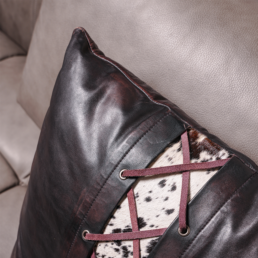 Elevate your interior with the Highland Stitch Cushion, a piece that blends 100% genuine cow leather with timeless craftsmanship. Its hand-stitched detailing adds character and durability, making it a refined accent for any sofa, armchair, or bed setup.
