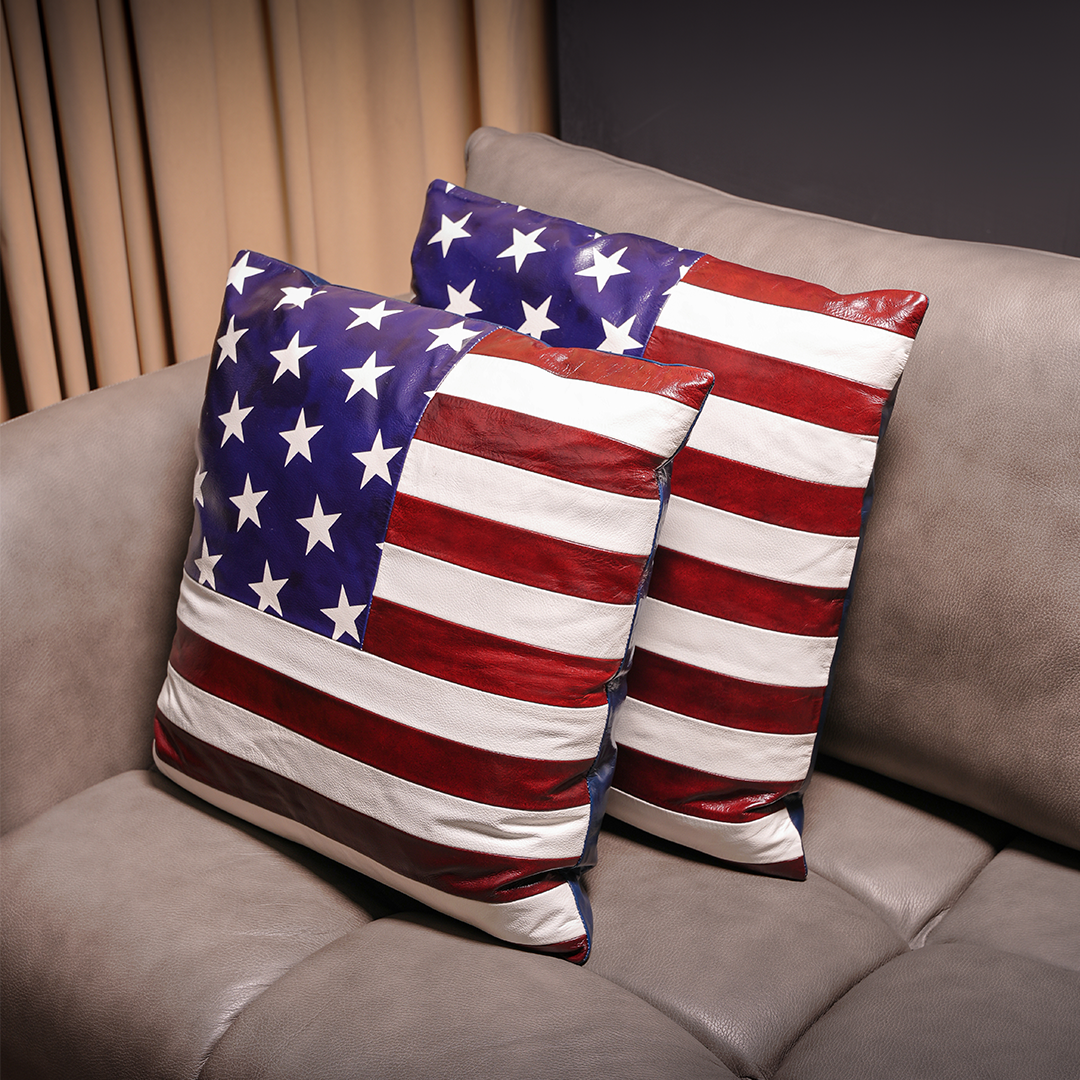 Celebrate bold style with the USA Flag Cushion, a striking blend of 100% genuine cow leather and high-quality sublimation printing. Designed for those who love unique, statement décor, this cushion brings patriotic flair and modern sophistication into any interior.
