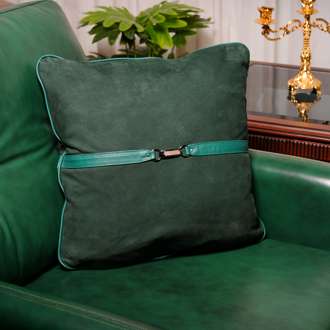 Transform your interior with the Nubuck Emerald Leather Cushion, a refined piece that blends the elegance of deep emerald green with the unmatched softness of nubuck leather. Designed to bring a luxurious pop of color to your living space, this cushion pairs perfectly with both modern minimal and classic luxe interiors.